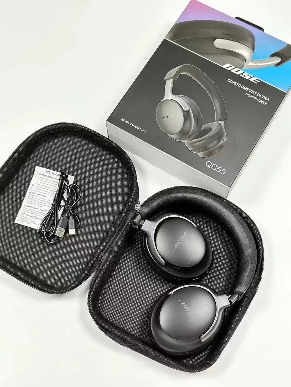 سماعة طاك بلوتوث QC55 مع حقيبة جلد